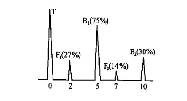 在原始狀態下,用蘸水的濕布觸摸人工缺陷,此時波幅變化情況如圖2所示。可見,降至滿幅的75%(-l.6dB), F降至滿幅的27%(-0.9dB);B2降至滿幅的30%(-4.4dB), F2降至滿幅的14%(-1.7dB)。在此情況下,通波及缺陷波較原始狀態均有所下降,說明這是能量衰減所致。