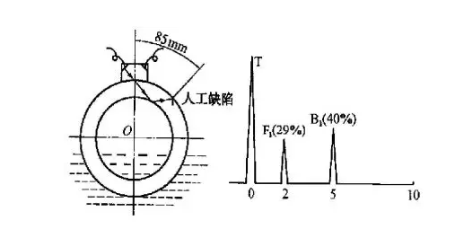 上述試驗結果表明,若鋼管外表面浸水 (內孔為空氣),用水浸法探傷缺陷回波信號要比接觸法低4dB,若鋼管內孔也充水,則缺陷回波信號要低6dB。因此在靈敏度調整時必須注意這一現象。